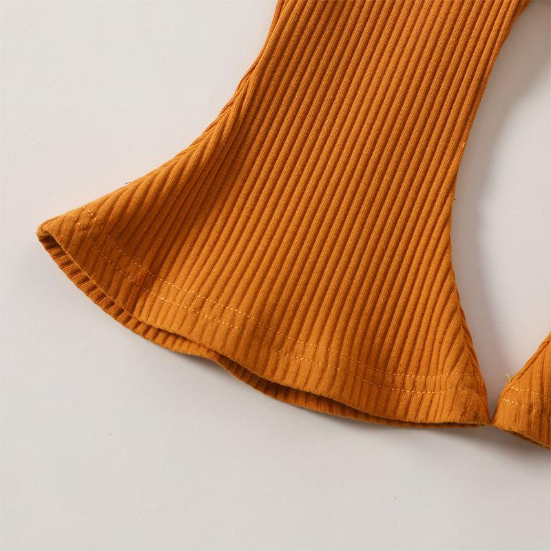 Two piece navel strap top and flared trousers.